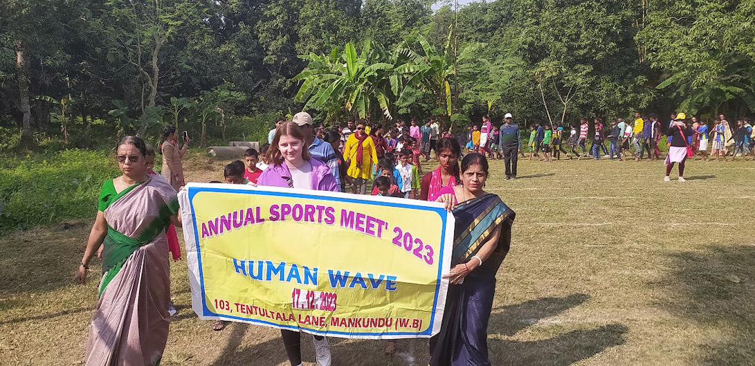 In 1997, after surveying the Adarshanagore slum in Mankundu, Mr. Tapas Kumar Sur began an adult literacy class, which later shifted to children’s development due to low participation from exhausted women. He introduced Brotochary—folk dance, values, and games—for children, and with strong community support, priorities such as child education, cultural activities, health, and local infrastructure were identified. Together, they built a small bamboo tutorial hall that grew over time, offering study materials, sponsorships, dance classes, health check-ups, and micro-savings for women. Five years later, the initiative expanded to a second project in Surerbagan–Khasbagan and further extended to South 24 Parganas around Baruipur and Raidighi through Human Wave.